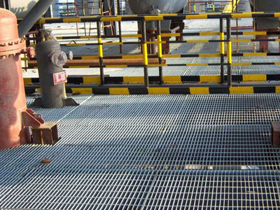 油田鋼格柵板  鋼格柵板又叫鋼格板、鋼格柵、格柵板。因地域性差異,北方人習慣稱為鋼格板,南方人習慣叫鋼格柵板。是用扁鋼按照一定的間距和橫桿進行交叉排列,并 且焊接成中間帶有方形格子的一種鋼鐵制品,主要用來做鋼結構走道平臺板,鋼梯的踏步板等.橫桿一般采用麻花鋼制作。應用范圍極其廣泛,一般工廠、車間、礦 業、港口的各類平臺都可選用、美觀氣派,安裝方便···